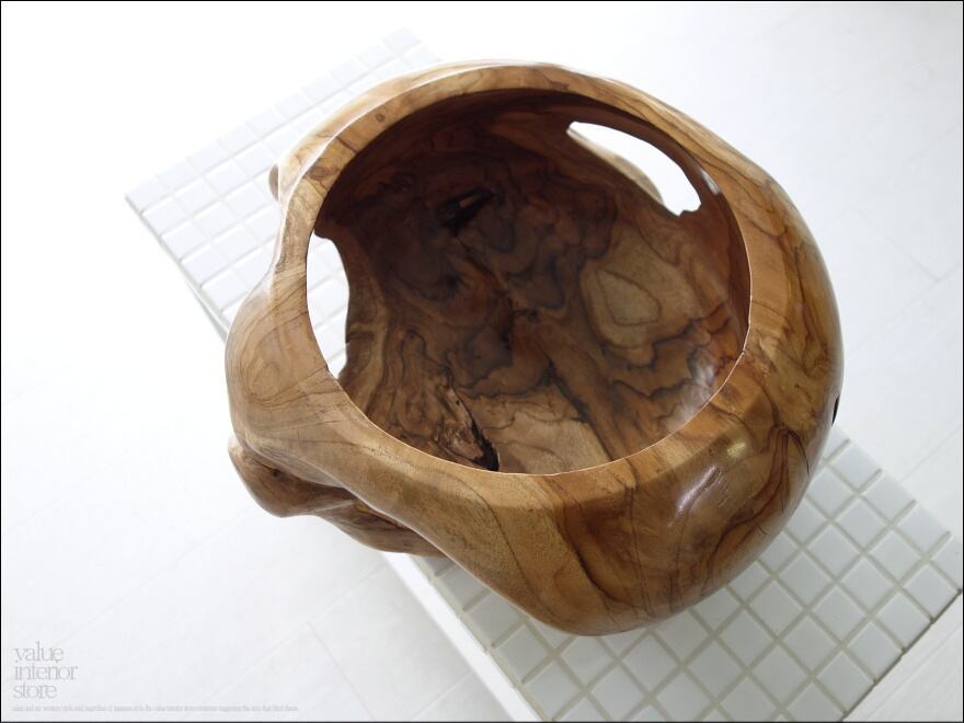 プリミティブチークポット平N35cm 鉢カバー 樹鉢 銘木 小物入れ 総無垢 プランツカバー 手作り プランツポット 手作り 天然木 送料無料