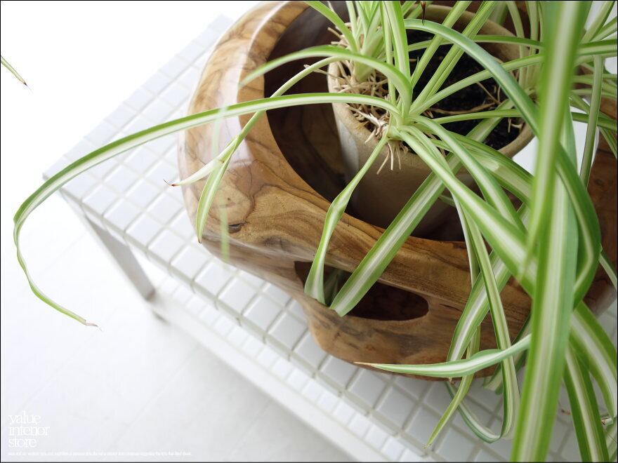 大変プリミティブで味のある木目が魅力的です。鉢を入れたりインテリア小物をディスプレイしたりお好みで使えます。