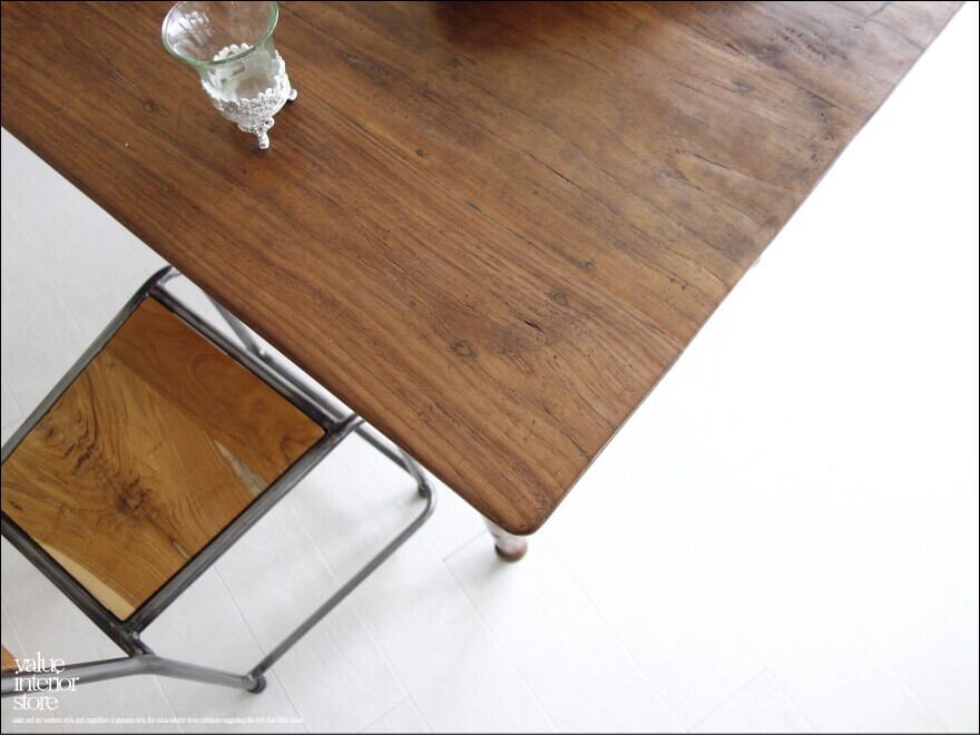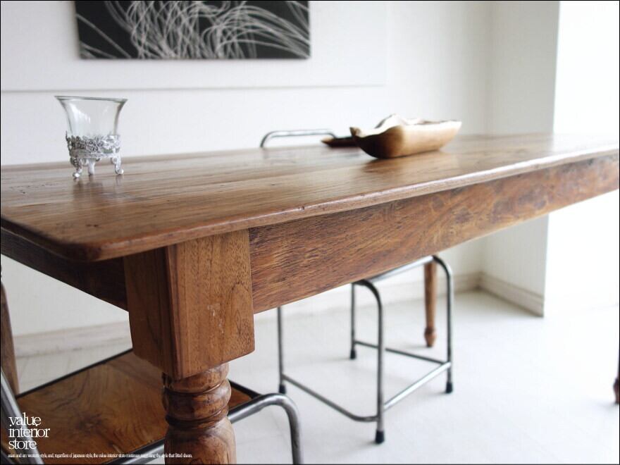 チーク無垢材 ヴィンテージテーブルh/1 ダイニング デスク 机 アンティーク 什器 無垢材家具 一点物 表面再仕上済 164cm 送料無料 三大銘木