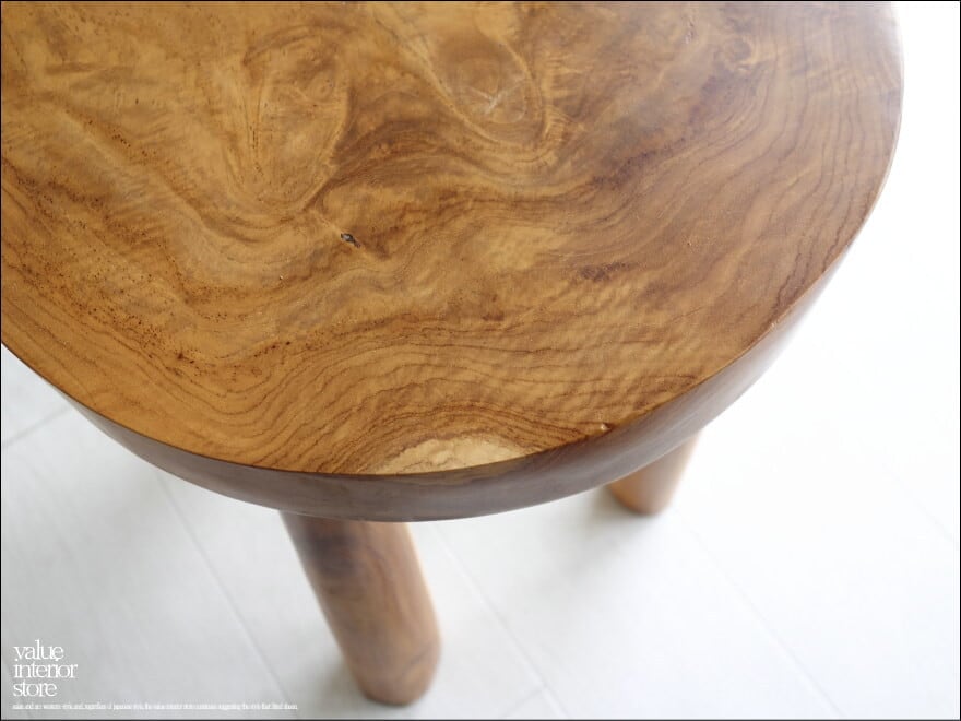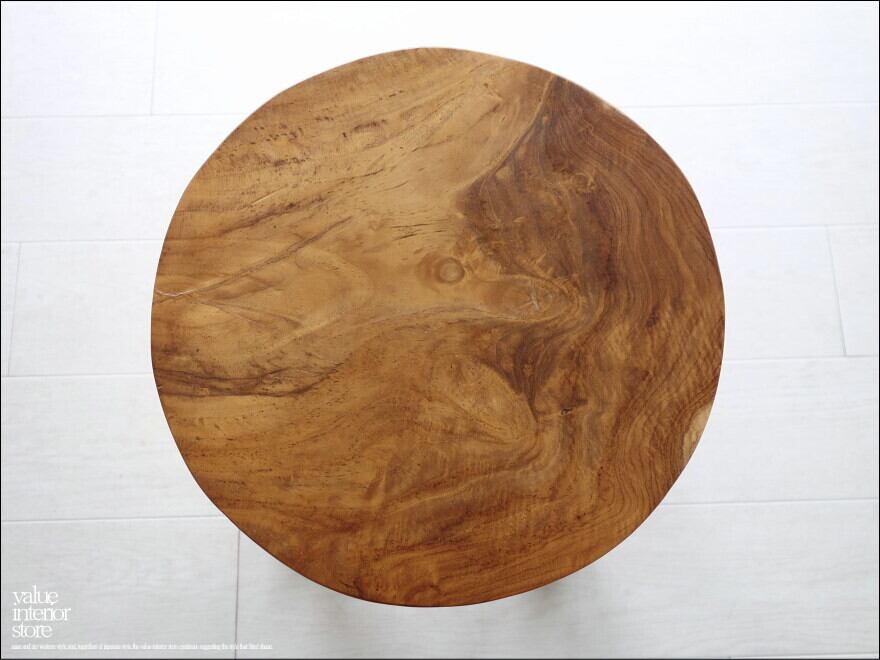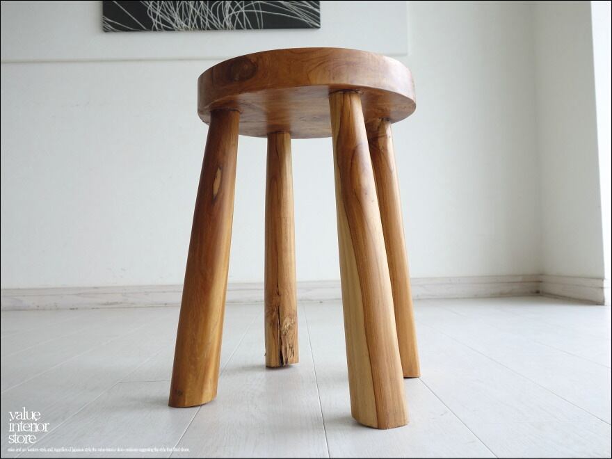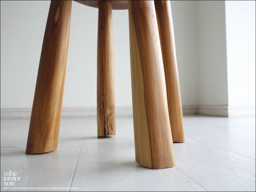 フレーム共にシッカリとした作りのチークスツール。木目が美しく素朴で魅力的です。椅子以外にもちょっとした飾り台としてもお使いいただけるデザインです。ショップなどのディスプレイ台、花台としても素敵ですね。