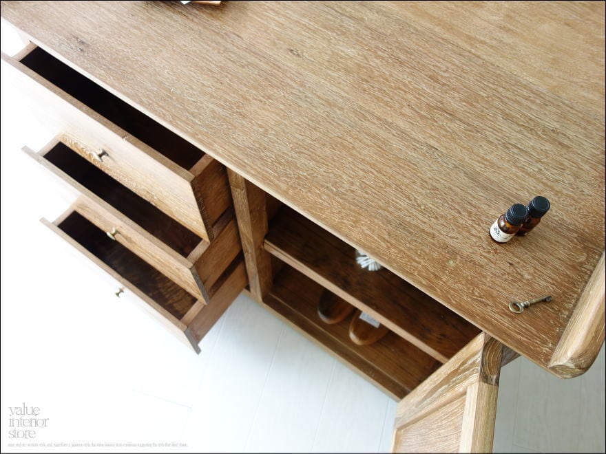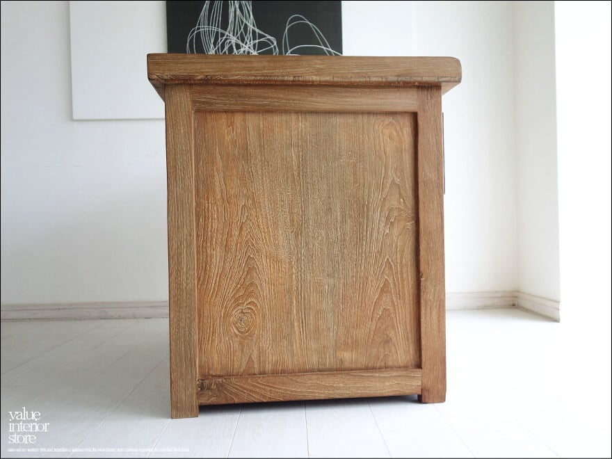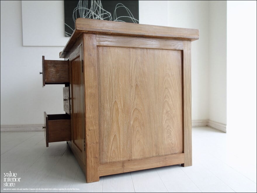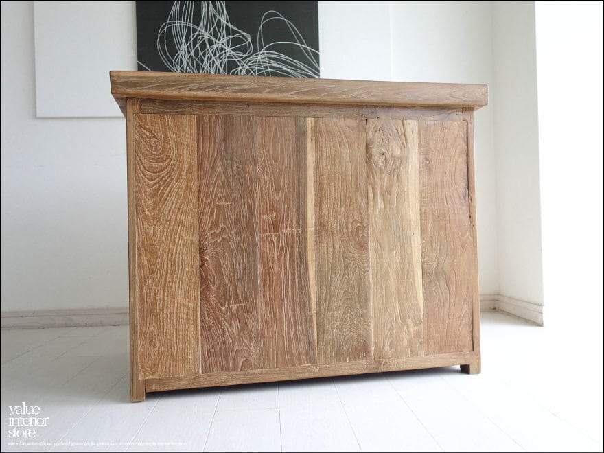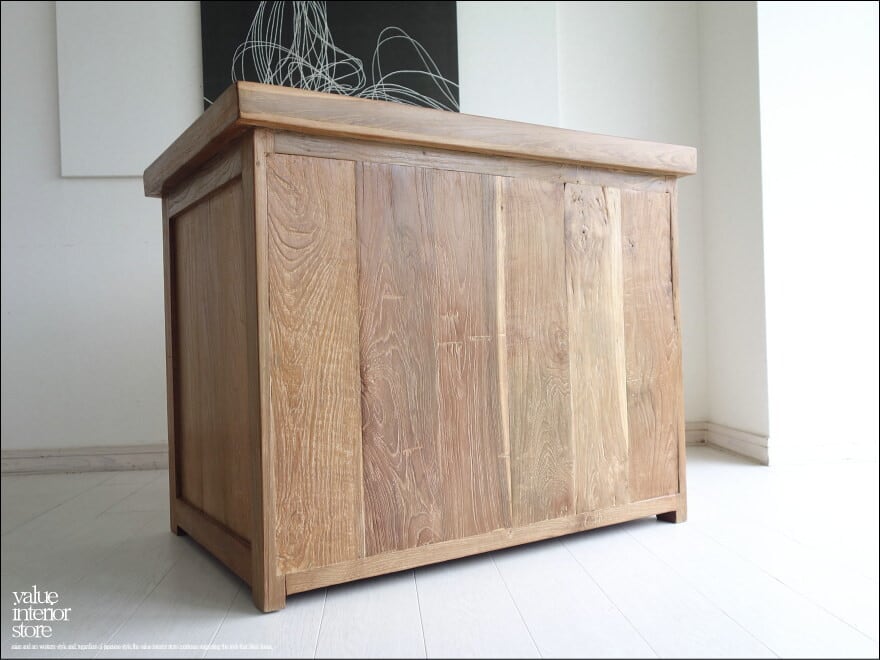 この商品は、表面再仕上げや欠損箇所の補修などをしている再生家具となります。元々の雰囲気は残して仕上げています。傷、ワレやフシ穴、色の濃淡、傾き、歪み、反り、汚れなどがございますが、素材や古いものの持つテイストとしてご理解をいただきますようお願い致します。(金物は全て真鍮製の新しいものを使用しています。鍵もお使いいただけますが簡単なもので、防犯目的には向いていません。また、カウンター前面の板はオールドチークに交換をしています。)