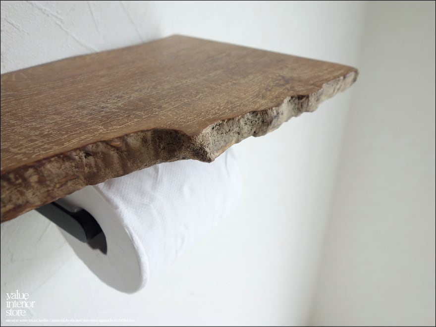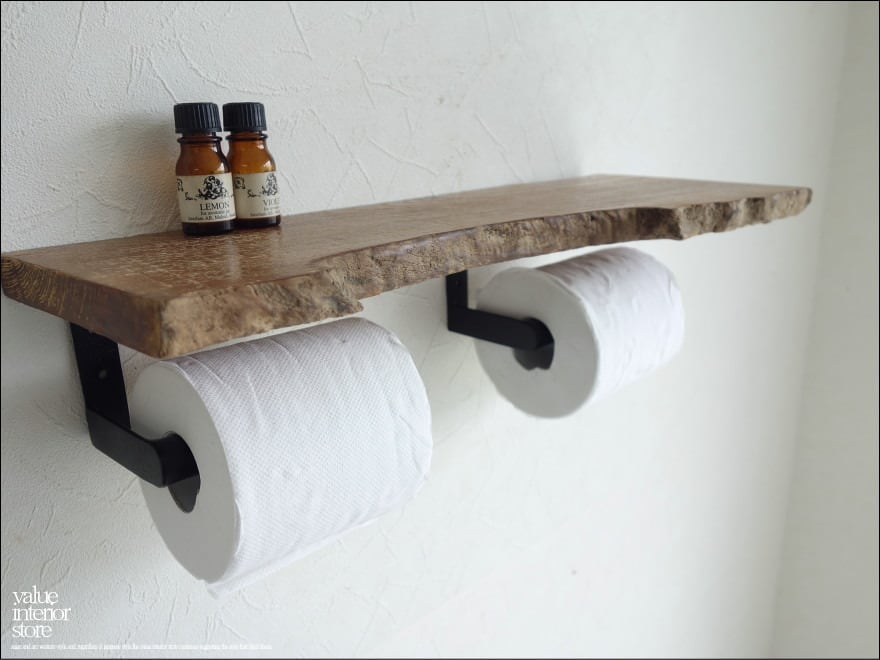 板の厚みも十分にあり、どっしりと存在感があります。2つのペーパーを設置でき、ペーパーは横からサッと通すだけの簡単セットなので便利ですよ。棚板にはお気に入りのインテリア小物やグリーンなどを飾ると素敵です。プライベートルームにもこだわりのインテリアをぜひこの機会にどうぞ。