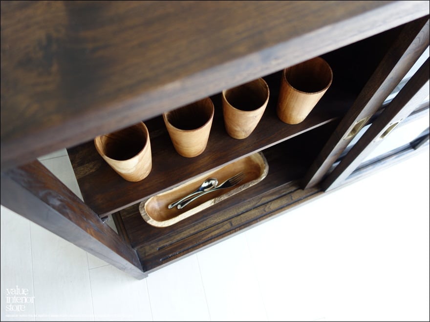 ・素材 : チーク総無垢、ガラス、真鍮(取っ手)