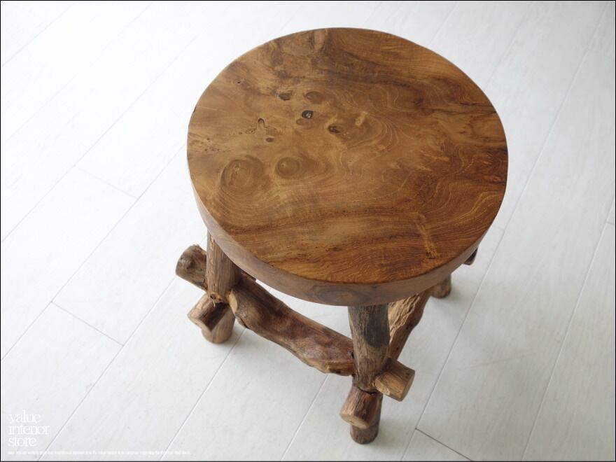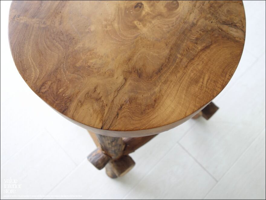 フレーム共にシッカリとした作りのチークスツール。木目が美しく素朴で魅力的です。椅子以外にもちょっとした飾り台としてもお使いいただけるデザインです。ショップなどのディスプレイ台、花台としても素敵ですね。この機会にぜひどうぞ。