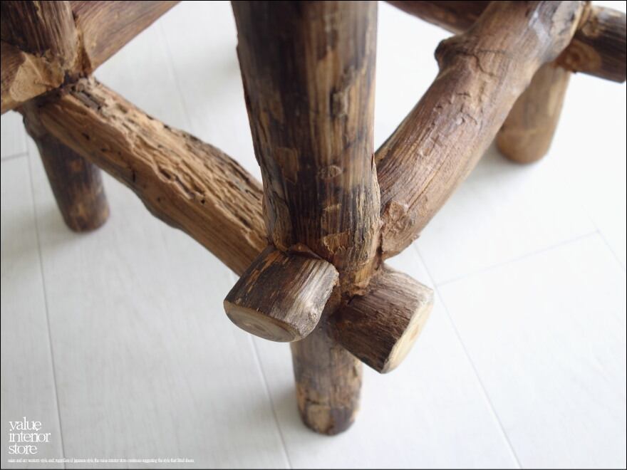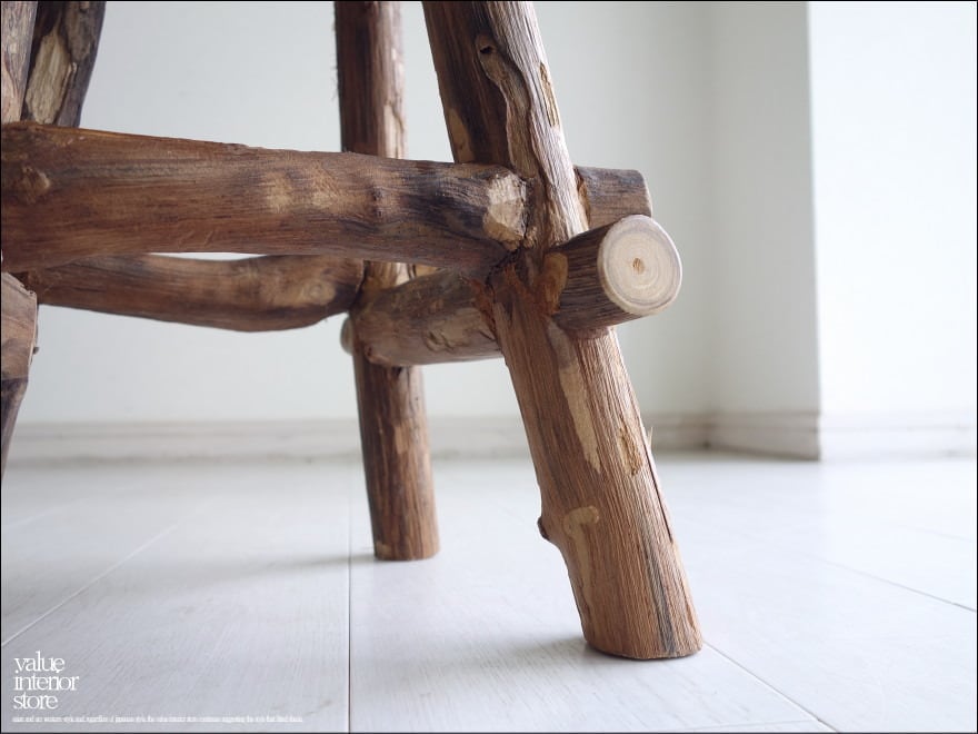 プリミティブな座面には、チークの個性的な木目が現れています。