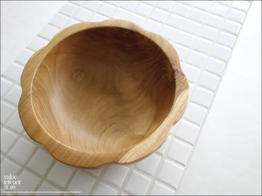 ナチュラルなチーク材の質感が魅力的です。サラダボールや菓子鉢、小物入れとしてお使いいただけます。