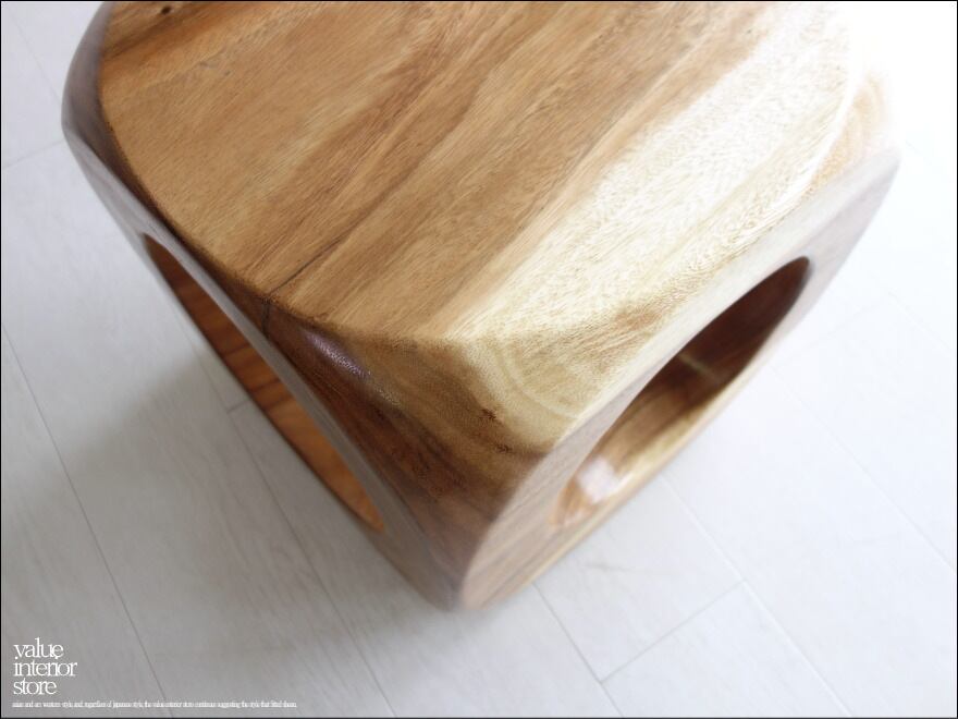 ウッデンスクエアスツールN 椅子 イス ベンチ 新品 チェア 手作り ナチュラル 椅子 サイドテーブル モンキーポッド総無垢 18.5kg 送料無料