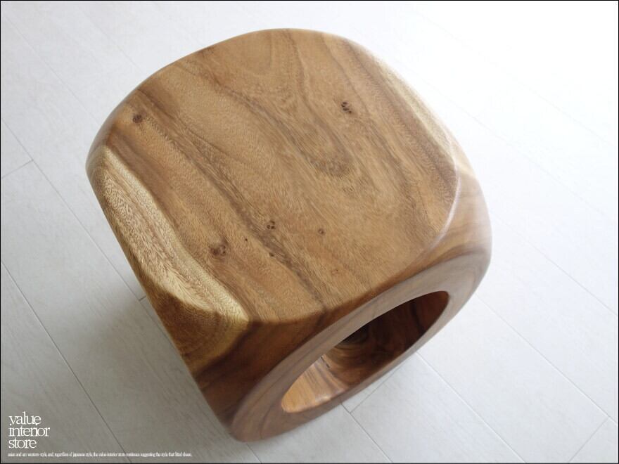 コロンとしていて丸くくり貫いてあるデザインも素敵です。ナチュラルな雰囲気で幅広いテイストに合わせやすく設置しやすいスツール。スツール以外にも花台やディスプレイ台としてもいいですね。