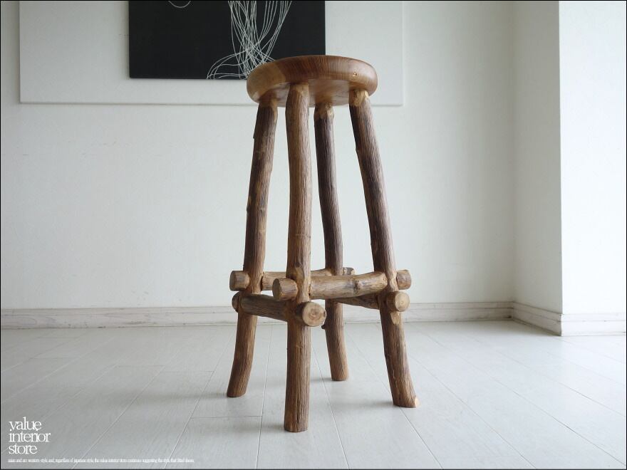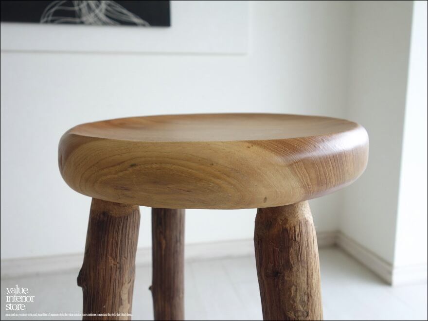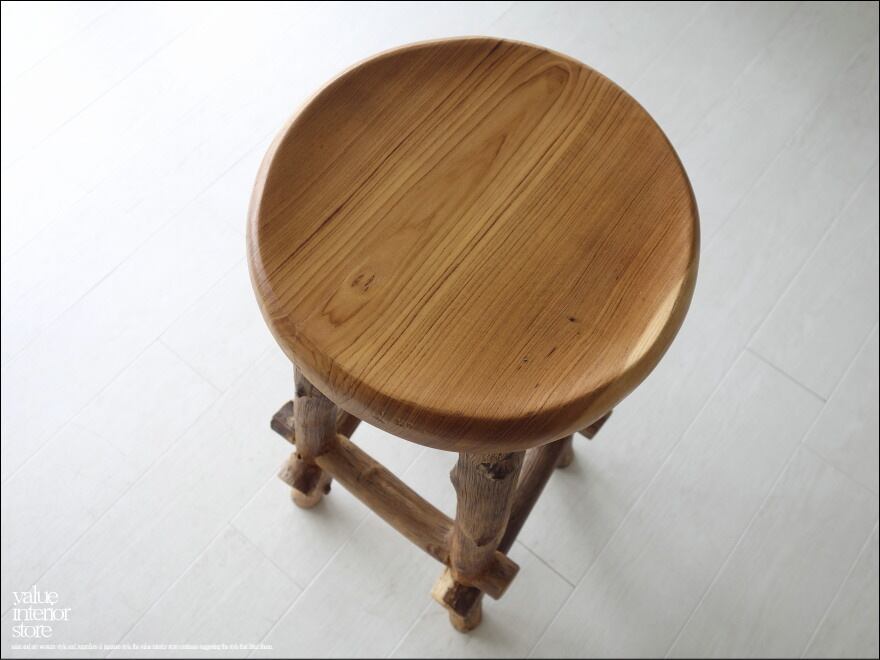 チーク無垢材 バースツールJ1 椅子 イス 木製 ベンチ 素朴 チェア 天然木 新品 銘木家具 ナチュラル 総無垢材 円形 送料無料 H75cm
