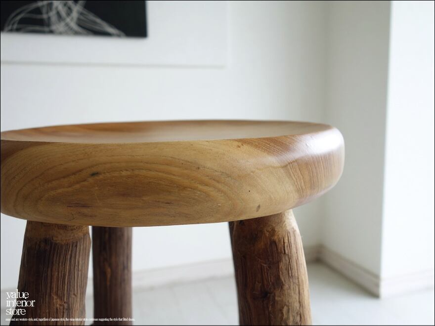 座面、フレーム共にシッカリとした作りのチークスツール。木目が美しく素朴で魅力的です。