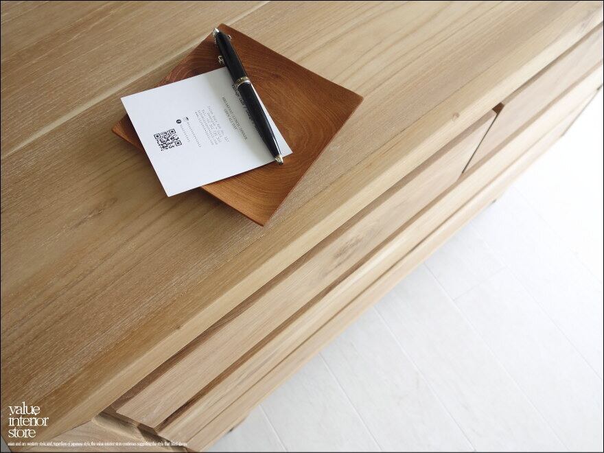 無塗装のナチュラルなチーク材の質感を活かしたチェスト。