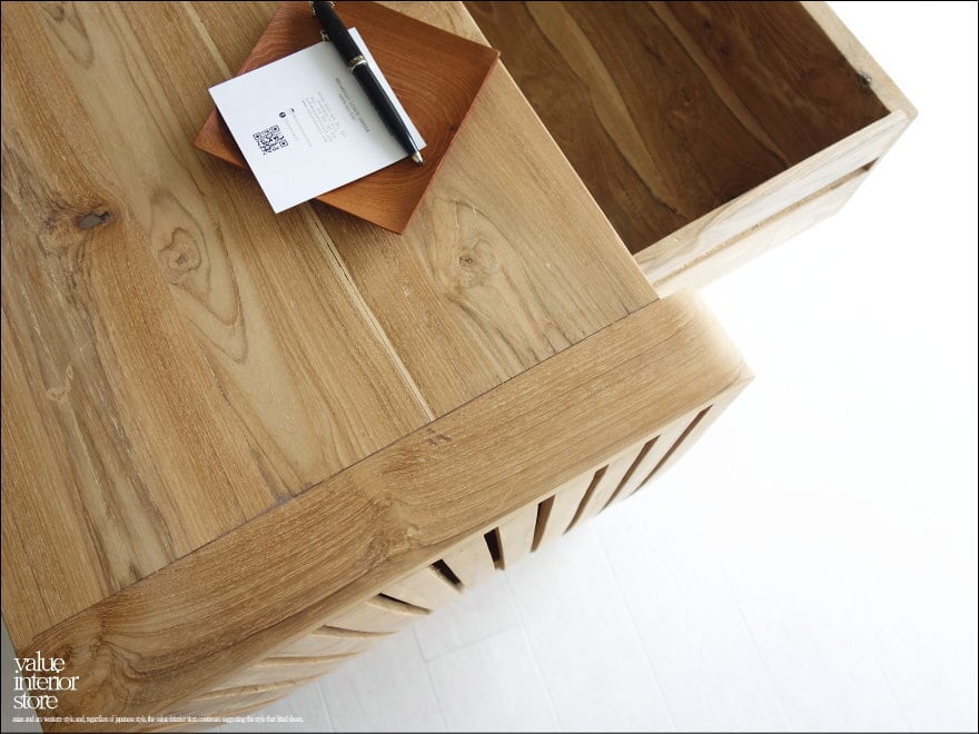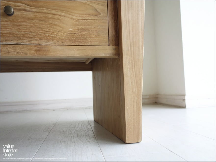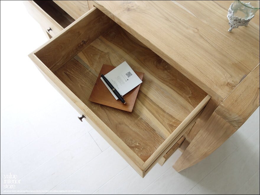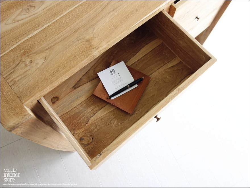 スマートな脚のデザインで、程よいサイズの引き出しは便利に収納できます。チークは良質な油を含みますので、徐々にいわゆるチーク色に色に変化していく過程もお楽しみいただけます。