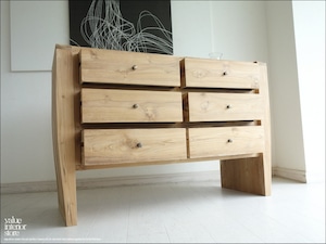 無塗装のナチュラルな無垢材の素朴な質感を活かしたチェスト。