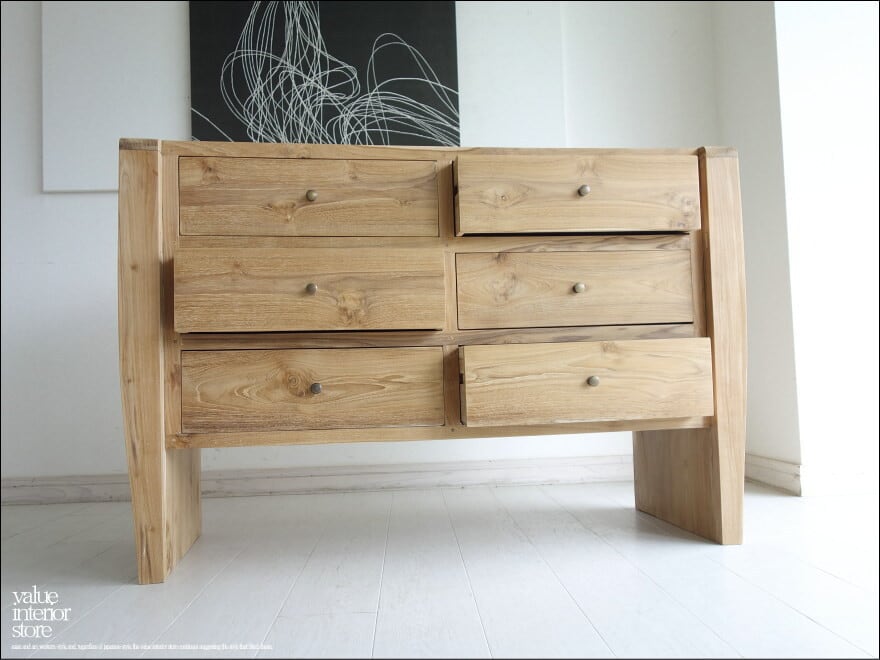 総無垢材 チークチェストCraf タンス 整理箪笥 収納タンス 無塗装 シンプル 手づくり 和 世界三大銘木 無垢材家具 幅120cm 送料無料