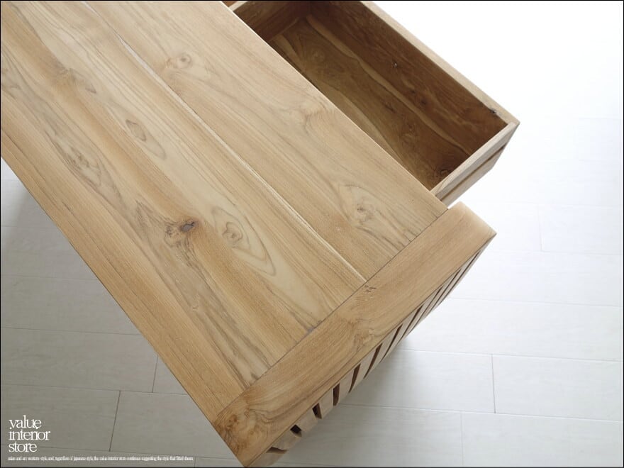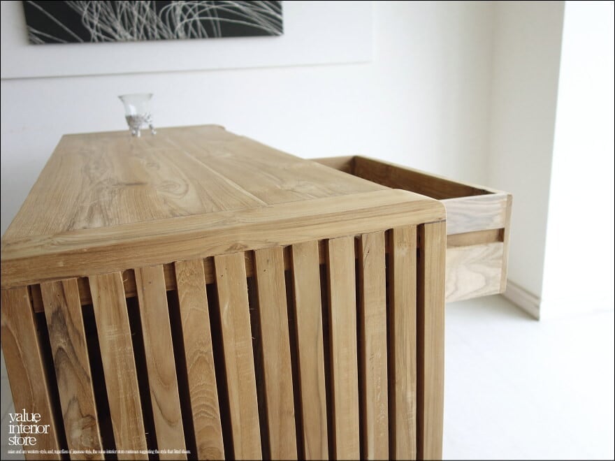 ◇チーク無垢材は人のお肌同様に、長時間、直射日光や冷暖房の風のあたる場所や湿気、乾燥が著しい場所を嫌います。反りや割れ、退色の原因になりますのでお避けください。