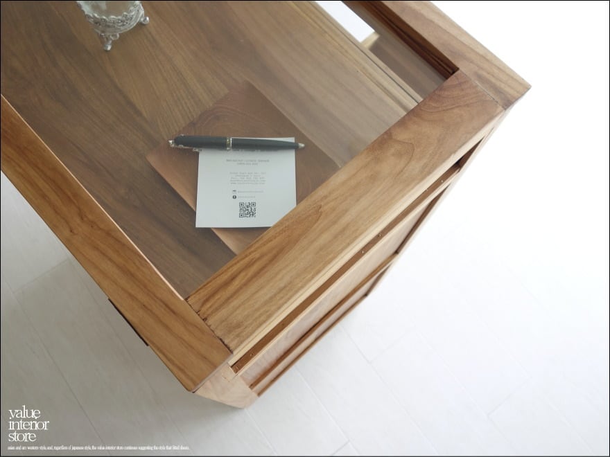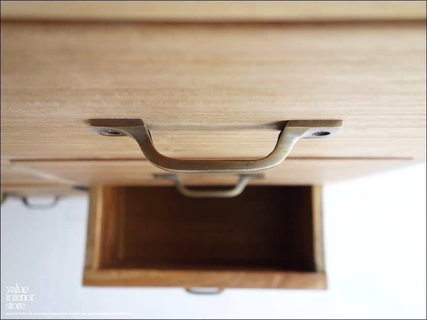 ・素材 : チーク無垢、ガラス、真鍮(取っ手)、(裏板・引き出しの底のみ合板)