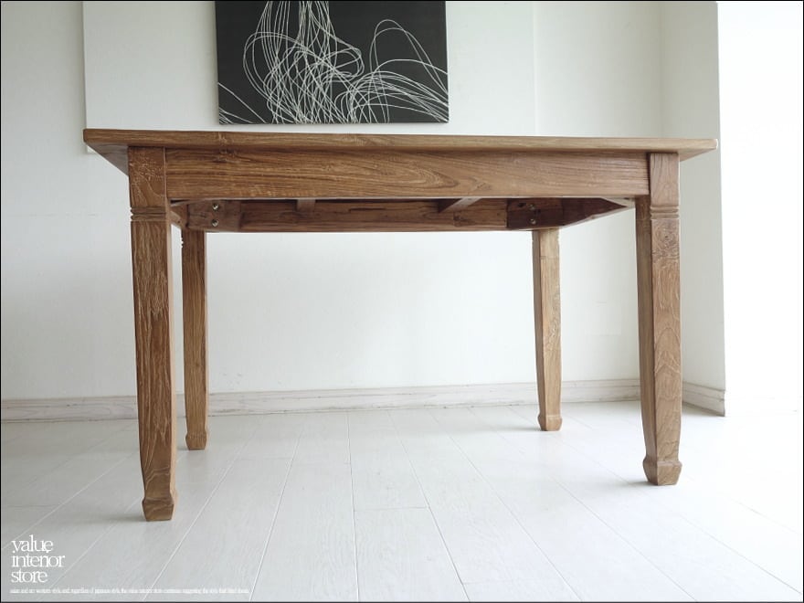 チーク材独特の色合いで、古材ならではの渋く落ち着いた質感から雰囲気が感じられます。