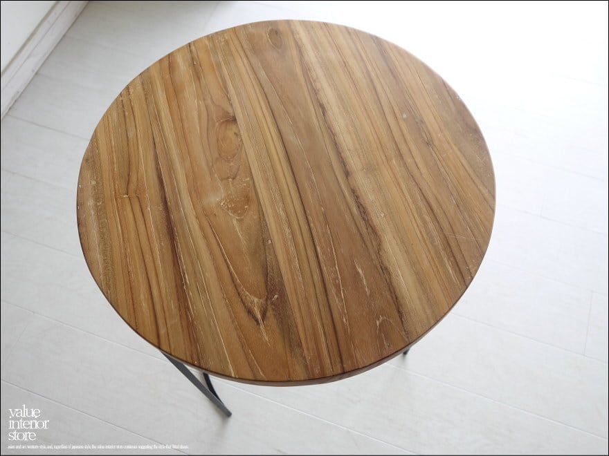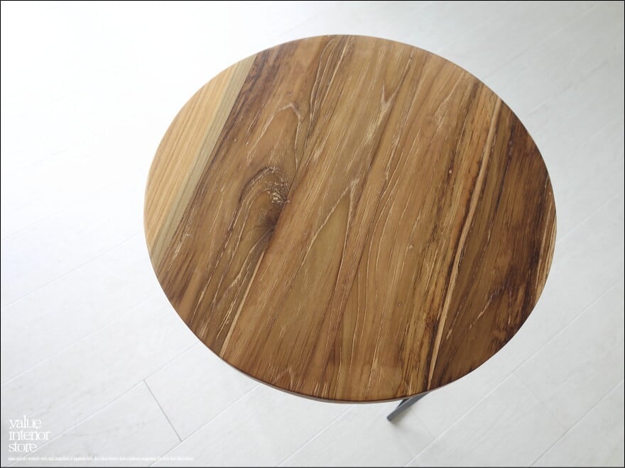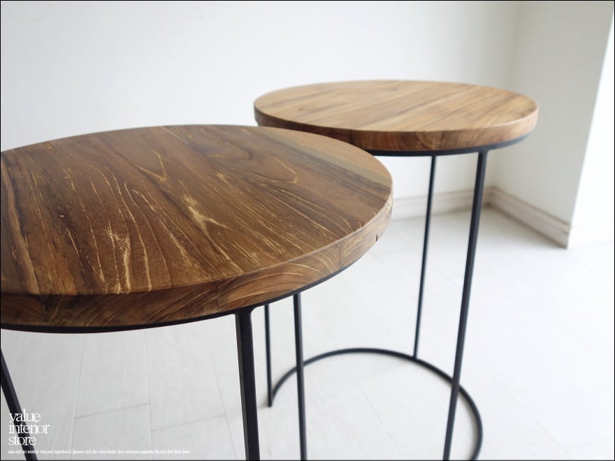 チーク鉄フレームサイドテーブル丸NL × 2台