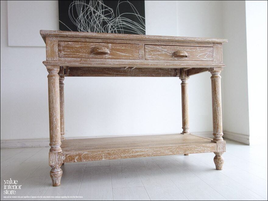 レジカウンターやコンソールテーブル、陳列台などの什器としてお使いいただけます。シャビーでアンティークな雰囲気さえ感じられるカウンターです。雑貨屋さんや美容室のレジ台にもどうぞ。