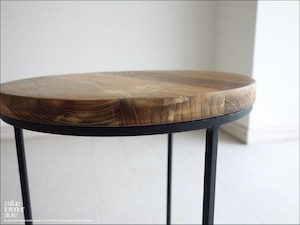 「 イシヅカ様 ご予約サイドテーブル 」チーク材 サイドテーブル丸NS ナイトテーブル 飾り台 花台 手作り シンプル 総無垢 ナチュラル 鉄脚 銘木家具 W35xH44cm 送料無料