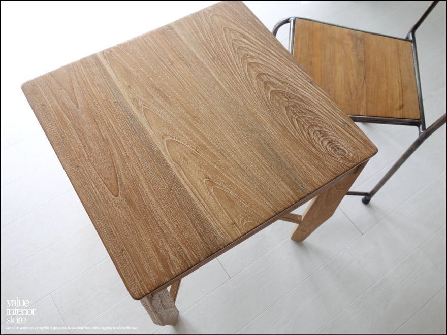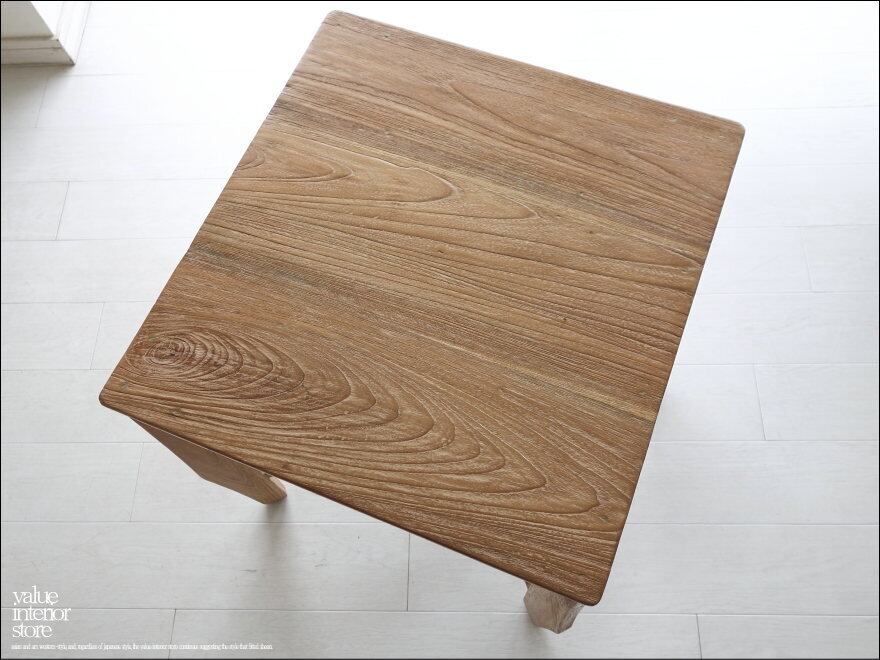 チーク総無垢材 ヴィンテージサイドテーブル VI アンティークテーブル 机 什器 陳列台 台 表面再仕上済 無垢材家具 世界三大銘木 送料無料