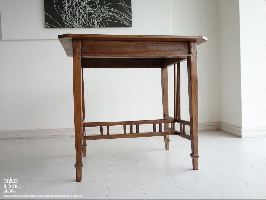 チーク無垢材 ヴィンテージデスクAnqbo02 机 アンティークテーブル 什器 無垢材家具 一点物 表面再仕上済 送料無料 世界三大銘木 幅74cm