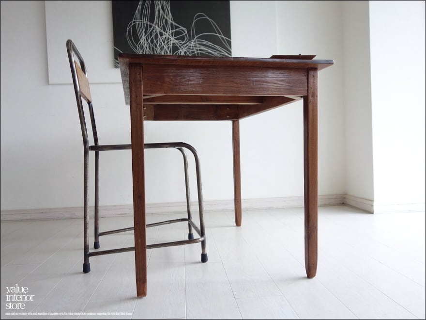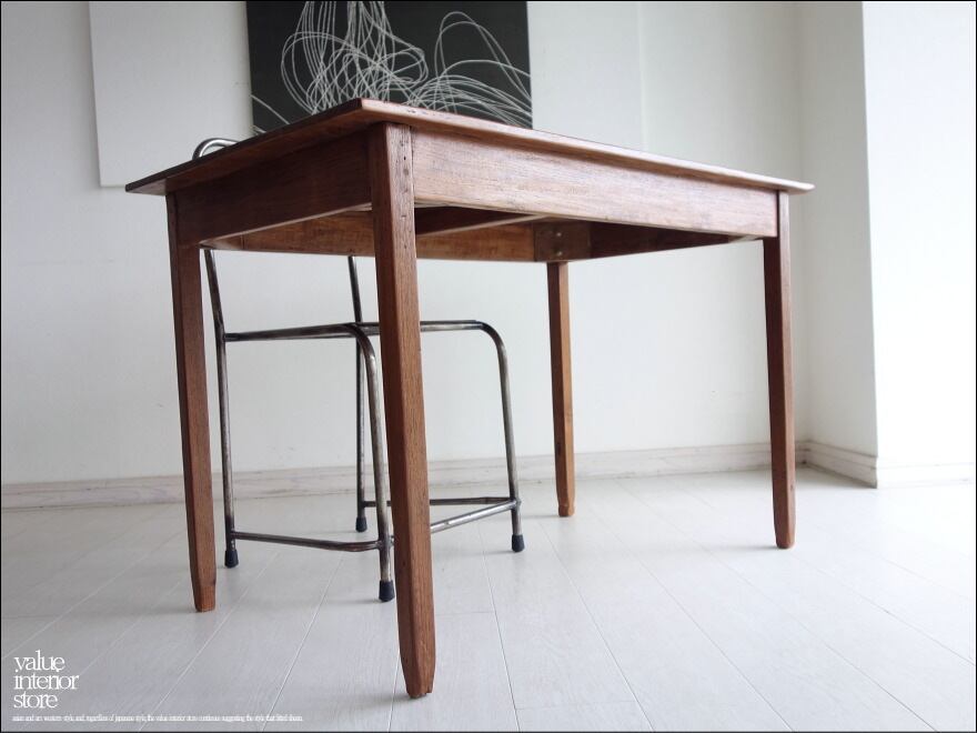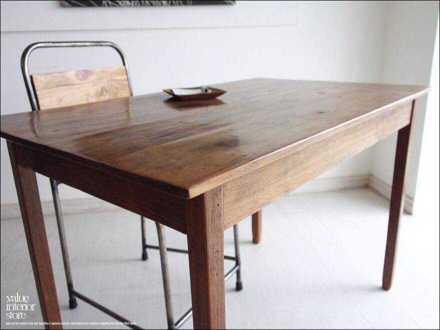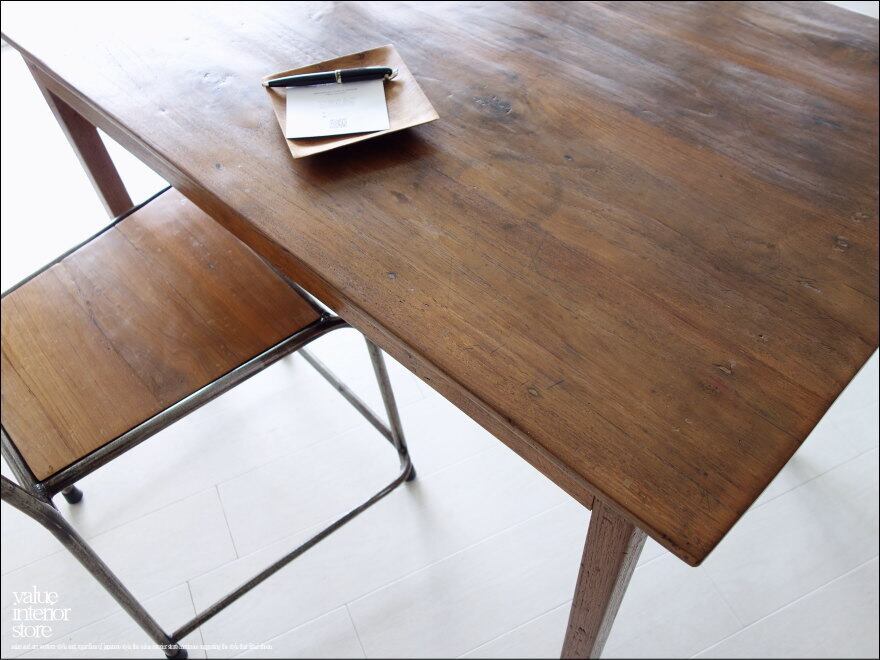 チーク無垢材 ヴィンテージテーブルAnqbo02 机 アンティークテーブル 什器 無垢材家具 一点物 表面再仕上済 送料無料 世界三大銘木 幅113cm
