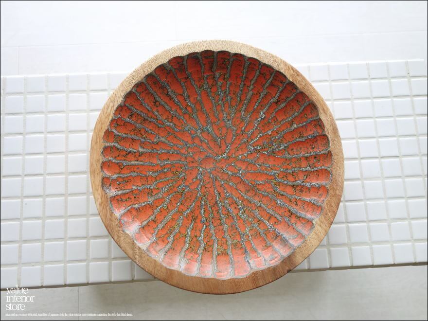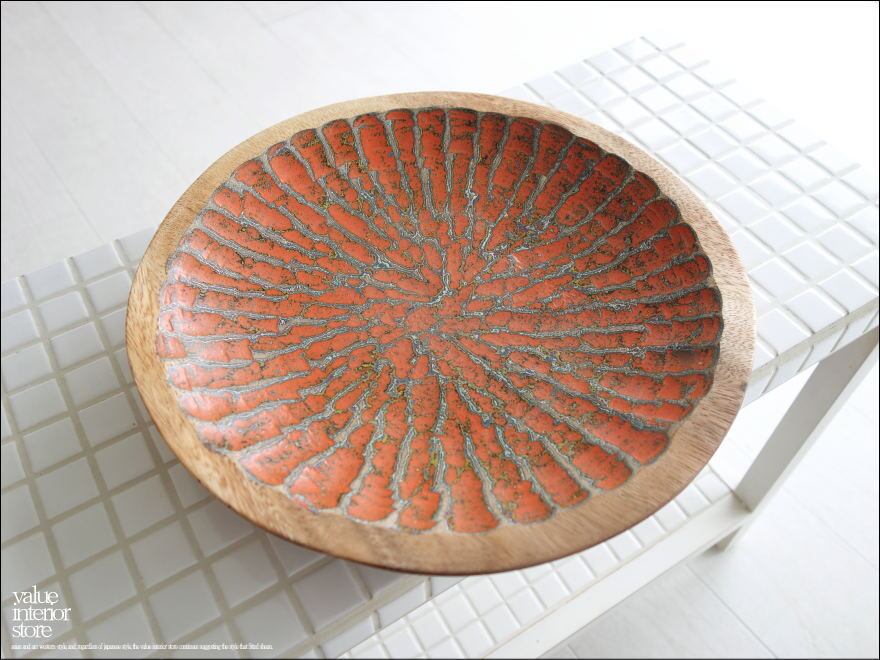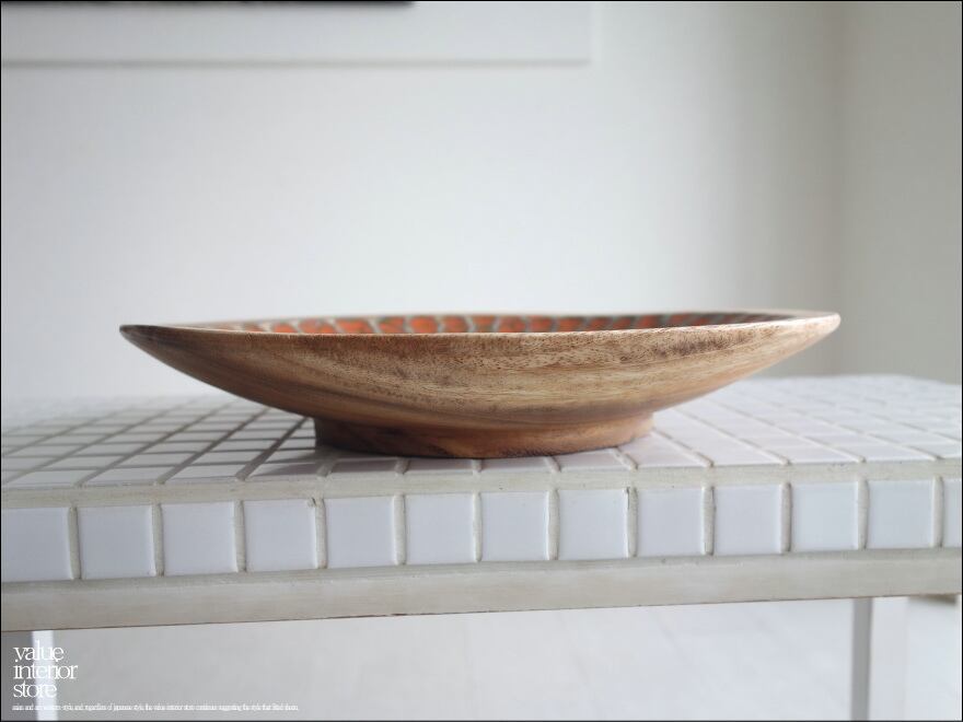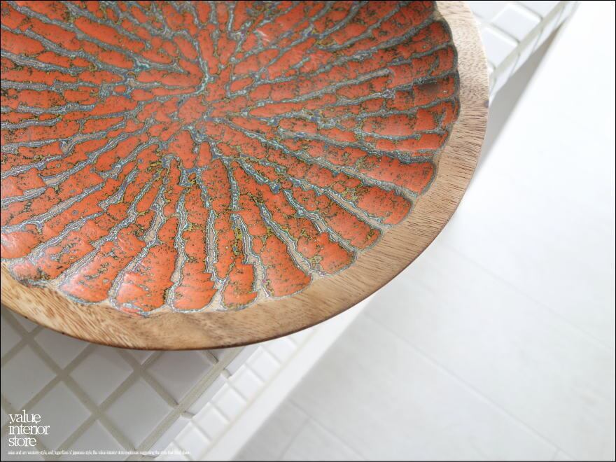 モンキーポッド総無垢材 デコレーショントレイR 小物入れ 飾り皿 木製 手作り エスニック ハンドメイド 一点物 直径30cm