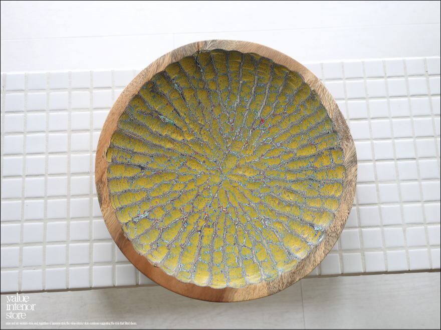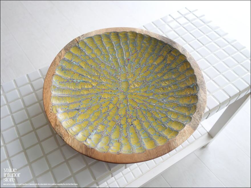 モンキーポッド総無垢材 デコレーショントレイY 小物入れ 飾り皿 木製 手作り エスニック ハンドメイド 総無垢 一点物 直径30cm