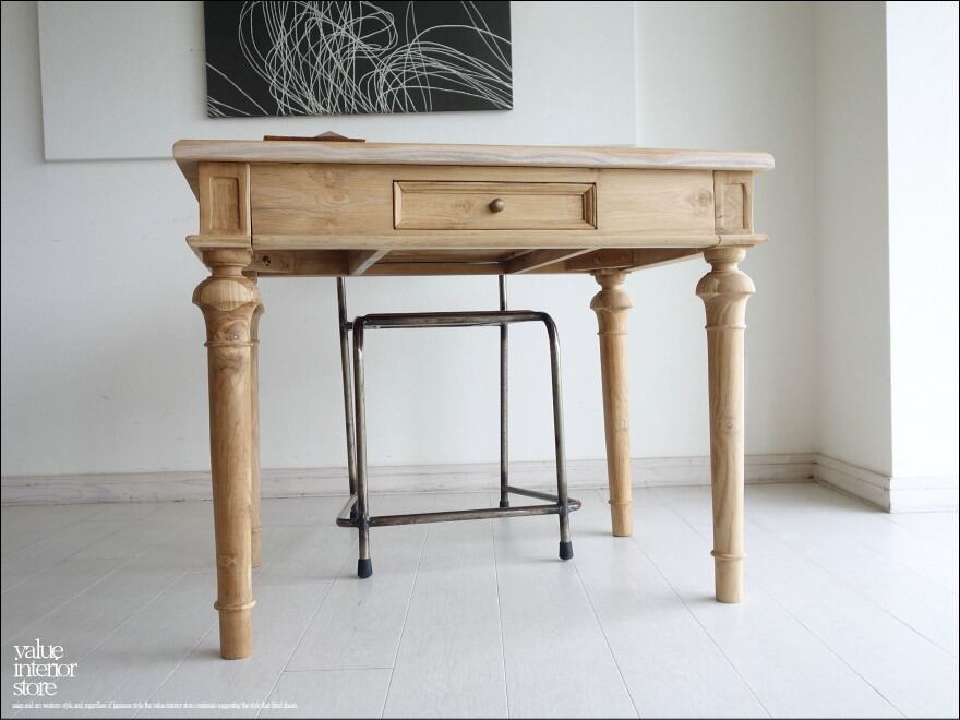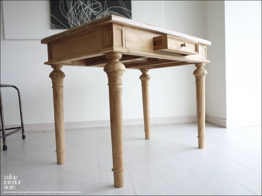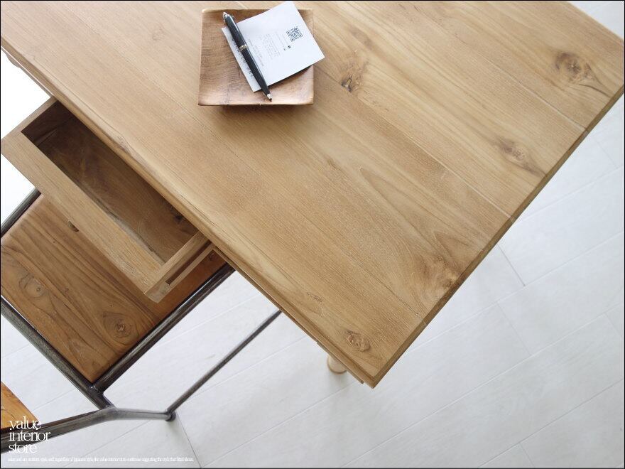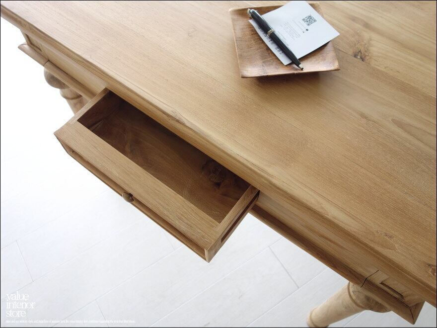 チーク総無垢 テーブルREA90cm カフェテーブル 机 対面デスク 手作り 無垢材 引出二杯 ナチュラル 送料無料 世界三大銘木 W90×D60cm
