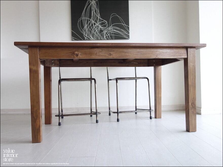 チーク無垢材 ヴィンテージテーブルke1 ダイニング デスク 机 アンティーク 什器 無垢材家具 一点物 表面再仕上済 銘木家具 150cm 送料無料