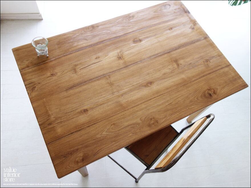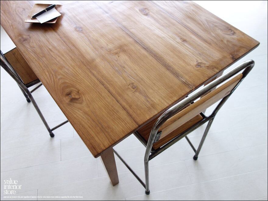 チーク無垢材 ヴィンテージテーブルAnq01 机 ダイニングテーブル 什器 無垢材家具 一点物 表面再仕上済 送料無料 世界三大銘木 幅126cm