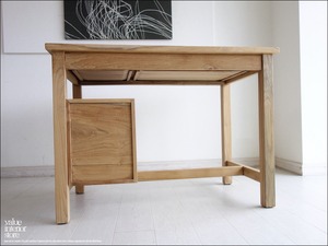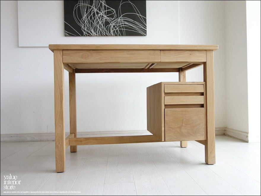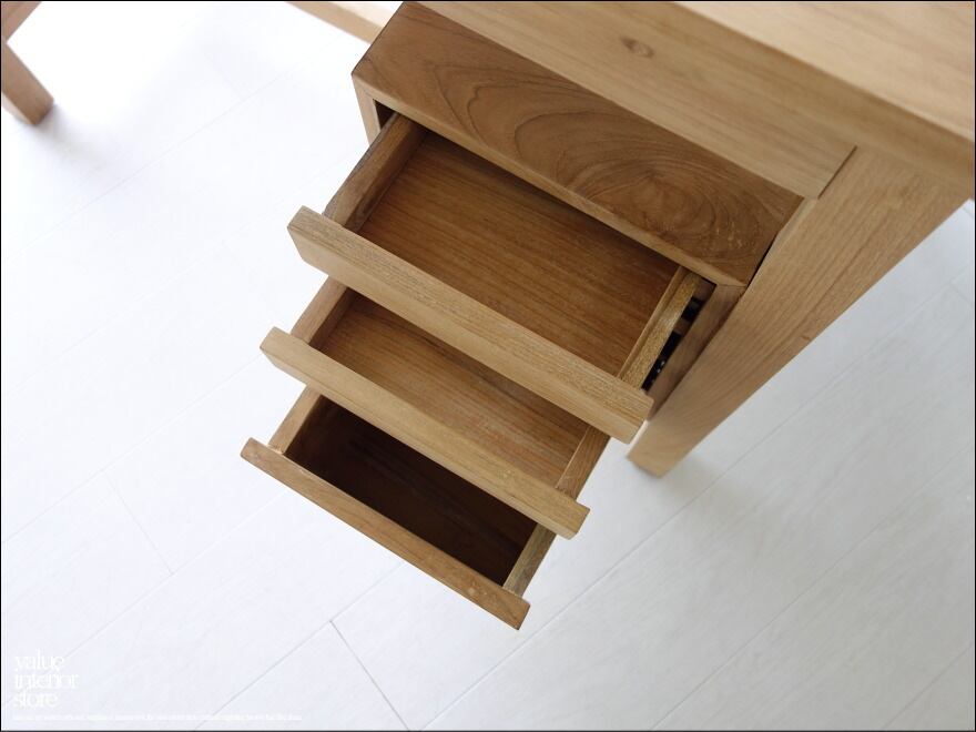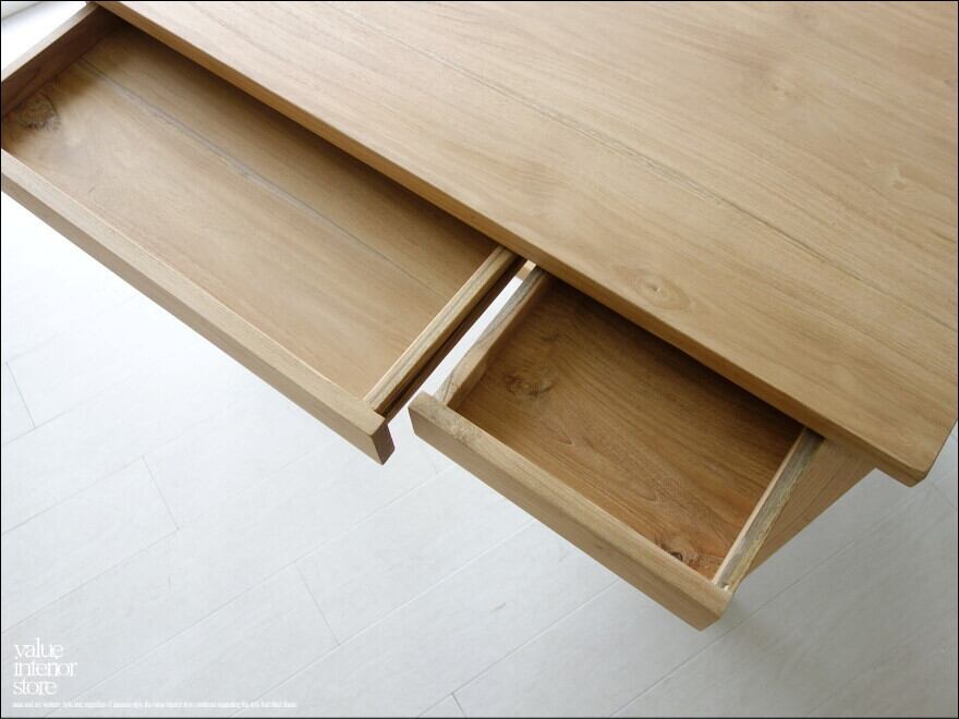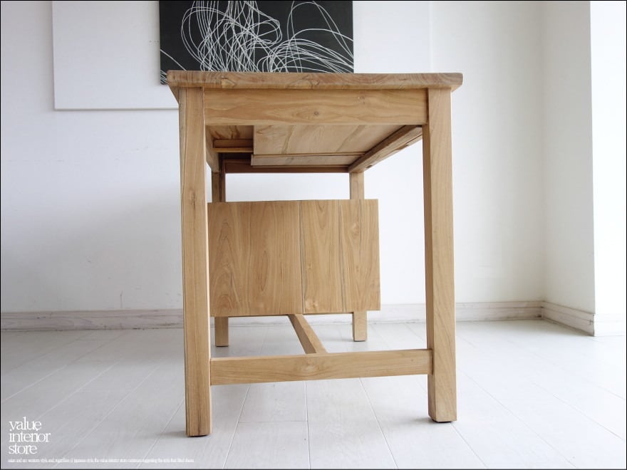 ナチュラルなチーク材の質感が魅力の総無垢材のデスクです。表面はアンフィニッシングとなります。良質の油分を豊富に含むチーク材は、少しづつ所謂チーク色に変化していくところも、こちらの製品の特徴で、楽しみなところです。