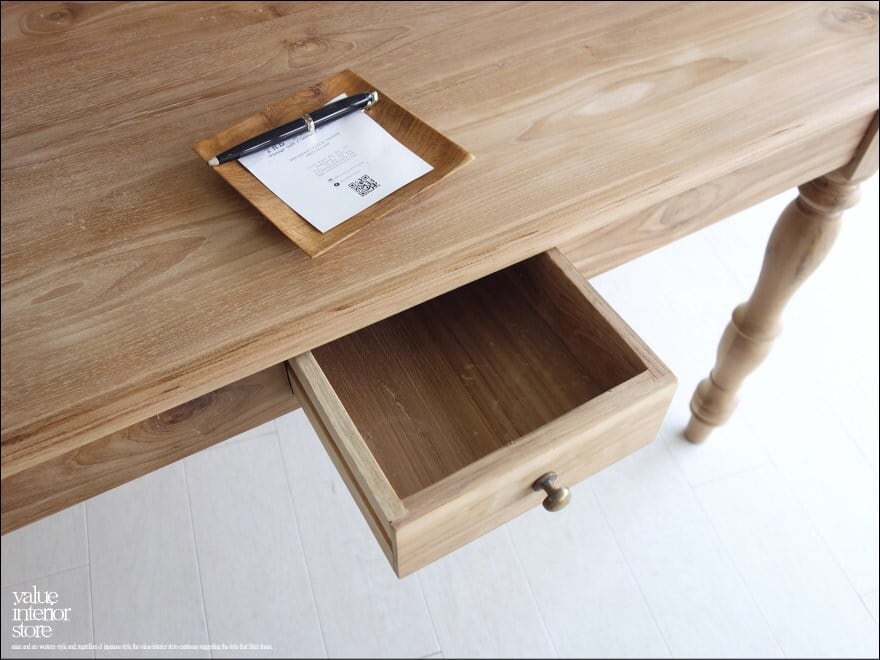 存在感がありゆったりとして、職人さんが丹精こめて作った印象に溢れています。このテーブルに向かうと自然と気持ちまで落ち着くようです。西洋、アジアン、和風モダン、北欧など幅広いテイストのインテリアと相性良くコーディネートできますのでお気に入りスペースでお使いください。