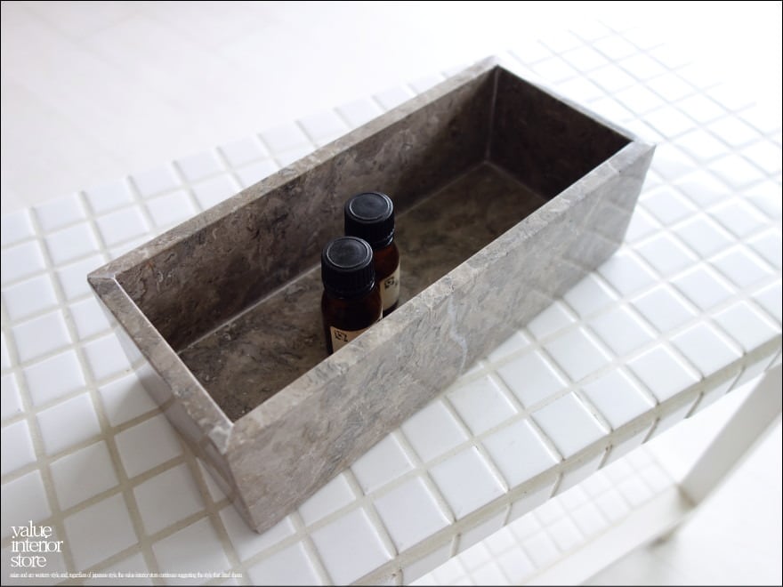 大理石で高級感があり落ち着いた雰囲気が素敵なトレイです。サニタリーでソープボトルトレーとして、また小物を入れていただくトレーとして、キッチンでは調味料置きとして用途は様々です。