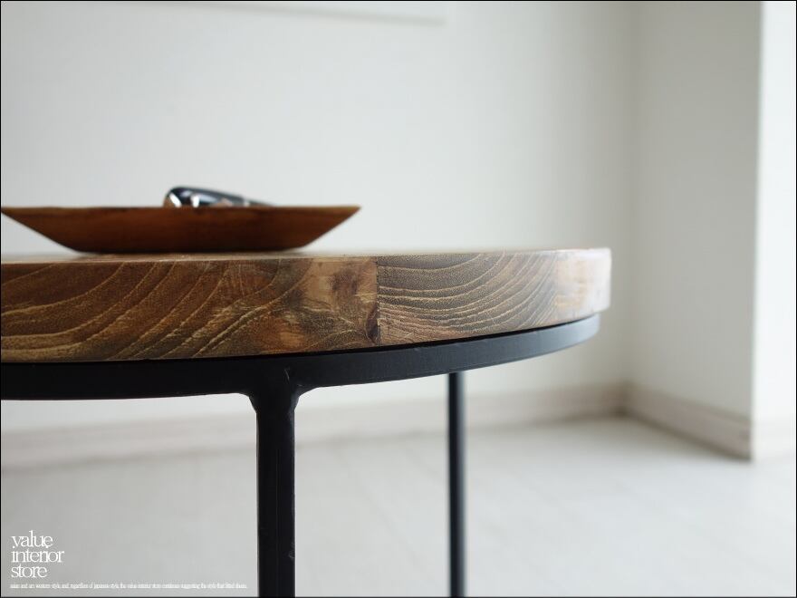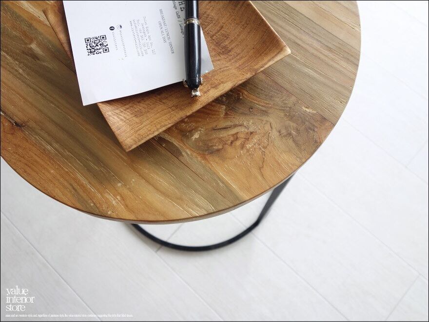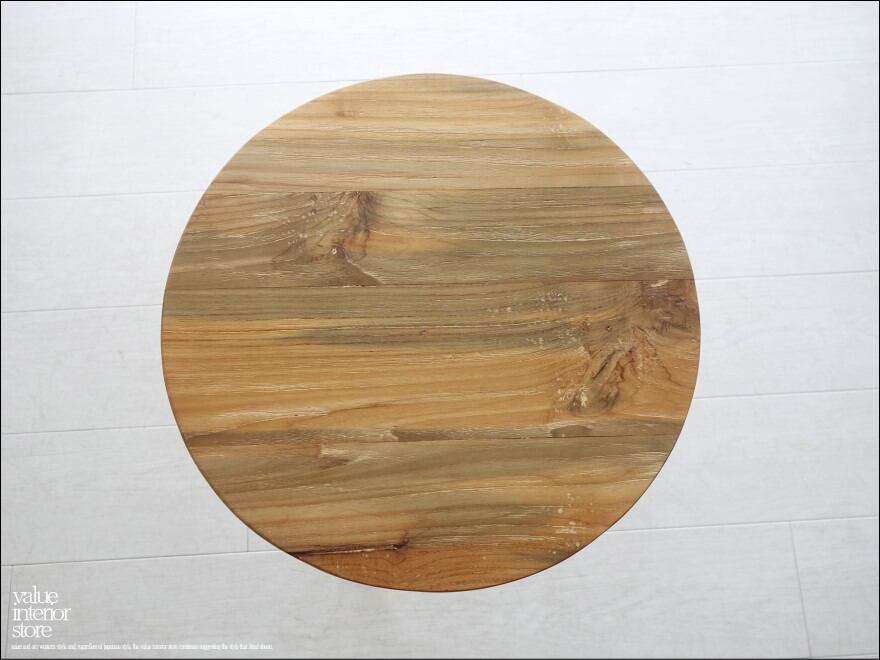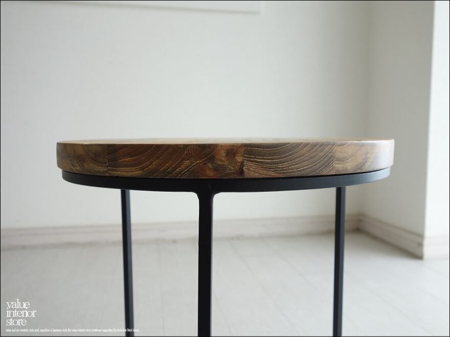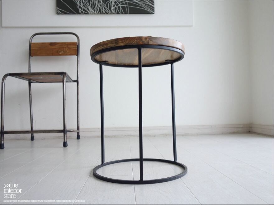 チーク材 サイドテーブル丸NS ナイトテーブル 飾り台 花台 手作り シンプル 総無垢 ナチュラル 鉄脚 銘木家具 W35xH44.5cm 送料無料