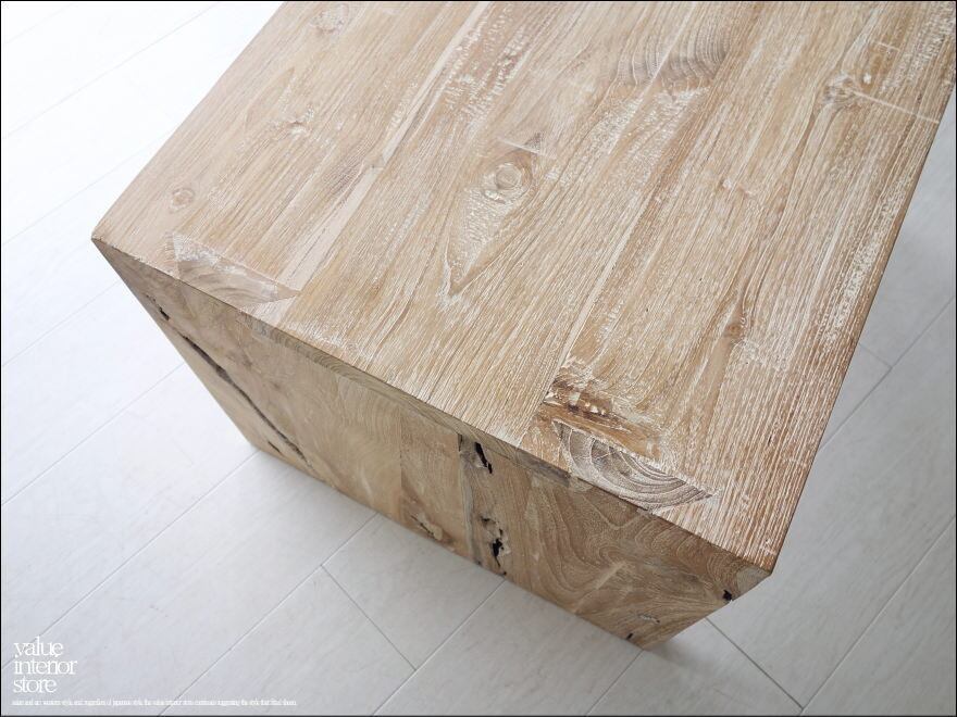 飾り台や花台としてもお使いいただけます。仕上げは、凹みに軽く白色を残したホワイトウォッシュ仕上げで、手間のかかった質感が伝わってくるテーブルです。置いてあるだけで存在感があります。
