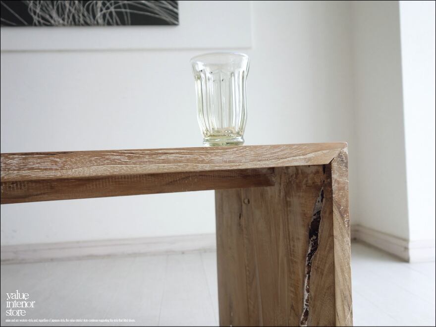 両サイドの脚にはプリミティブ部分を使用したオールドチークテーブル。