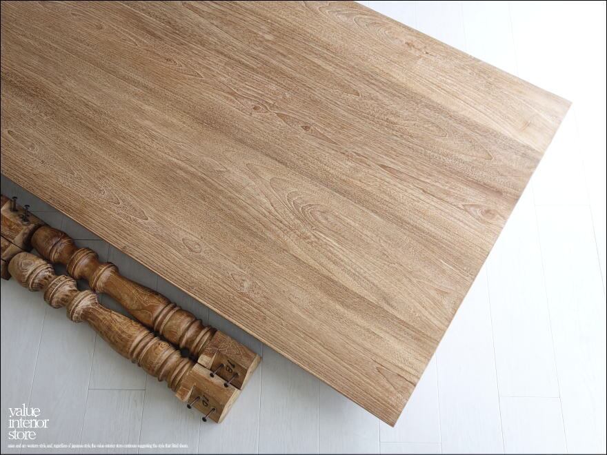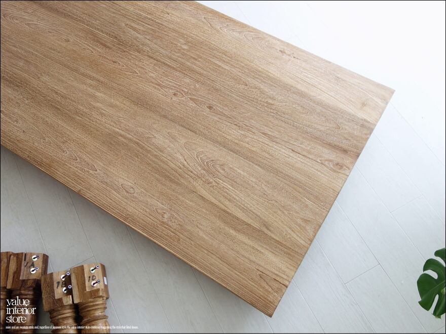 一目見ただけで木目の味わい深さが感じられるオールドチークのダイニングテーブル。
