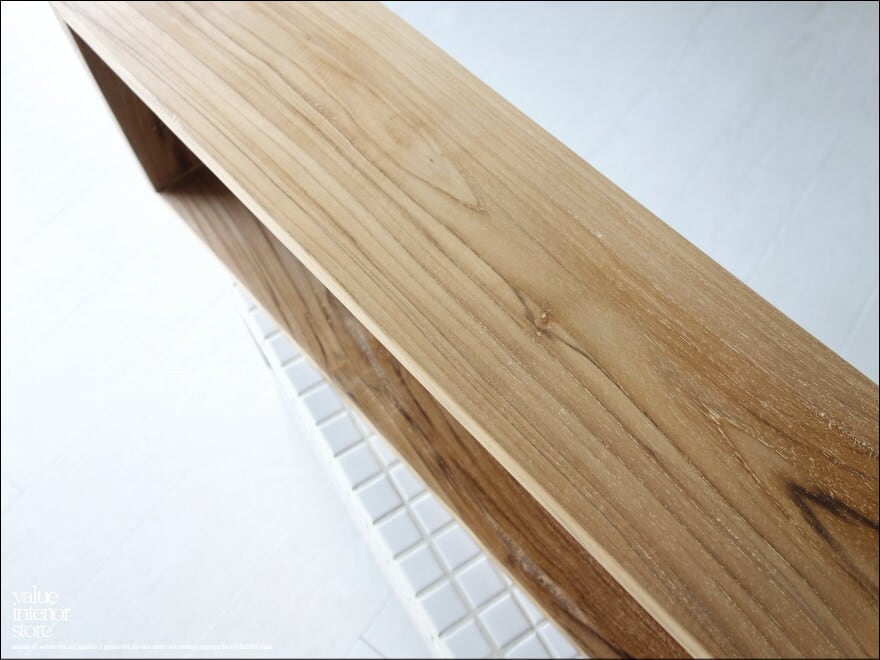 木目が美しいシンプルなデザインのチークウォールシェルフ。