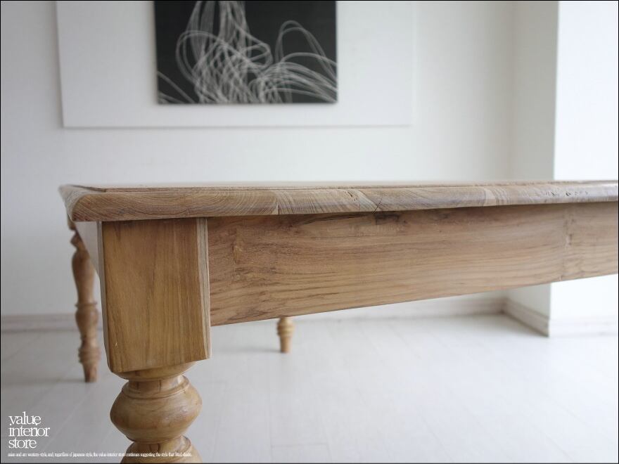 存在感がありゆったりとして、職人さんが丹精こめて作った印象に溢れています。このテーブルに向かうと自然と気持ちまで落ち着くようです。西洋、アジアン、和風モダン、北欧など幅広いテイストのインテリアと相性良くコーディネートできますのでお気に入りスペースでお使いください。