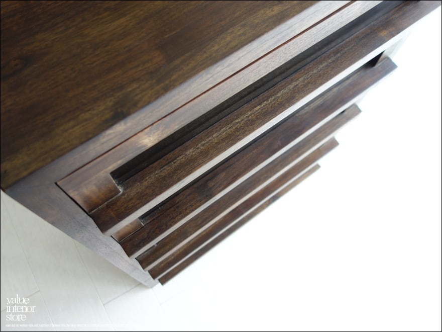 ◇日本製のような正確さは無いかもしれませんが、1点1点出来上がるまでの殆どの製作工程を手作業で行う、インドネシア家具職人たちの手づくり製法はとても暖か味が感じられます。細かな傷、ひび割れやフシ穴、お色の濃淡、また反りなどの無垢材特有の”暴れ”や修理痕が見受けられる場合がございますが、無垢材の素材や特徴、また手づくりのテイストとして工業品にはない自然の質感をお楽しみ下さい。