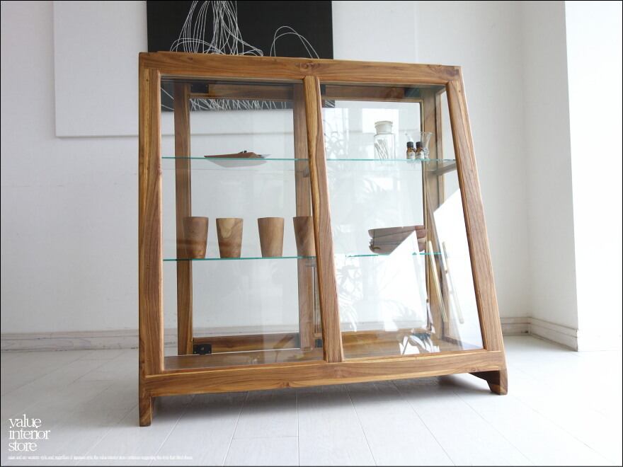 ・チーク総無垢で贅沢に仕上げたナチュラルで素朴なガラスショーケース。