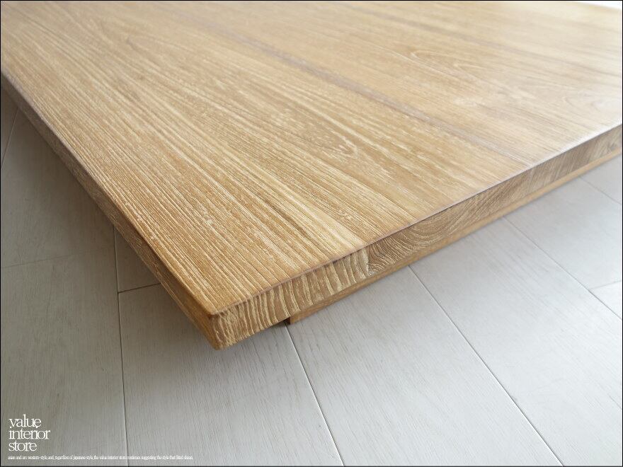 ナチュラルカラーながら表面仕上げに一工夫することで、素朴で落ち着いた雰囲気に仕上がりました。チークの渋く硬い特徴を引き出す角型の天板を柔らかな丸脚が支えていて、そのバランスが素敵です。シンプルなデザインで、チークの良さを存分に楽しんでいただける、とてもステキなダイニングテーブル。こんなテーブルで毎日食事ができたらペースダウンできステキですね。ショップやカフェのテーブルとしてもおすすめです。
