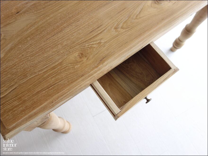 存在感がありゆったりとして、職人さんが丹精こめて作った印象に溢れています。このテーブルに向かうと自然と気持ちまで落ち着くようです。西洋、アジアン、和風モダン、北欧など幅広いテイストのインテリアと相性良くコーディネートできますのでお気に入りスペースでお使いください。