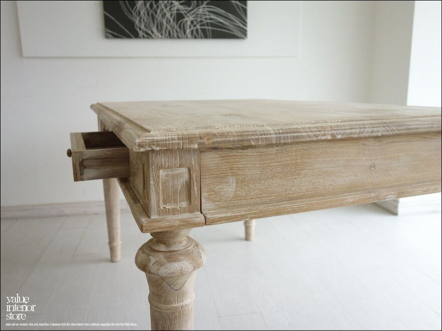 天板を支える脚、また、幕板もこだわったデザインで大人の雰囲気があります。チークの渋く硬い特徴やフシなどの木が本来持つ個性的なキャラクターが大変面白く、また、手作りでしか出せない素朴な質感とのバランスも良いです。良質な油分を豊富に含むチーク材ですので、徐々にチーク色に変化していくところも楽しんでいただけるダイニングテーブル。こんなテーブルで毎日食事ができたらステキですね。ショップやカフェのテーブルとしてもおすすめです。