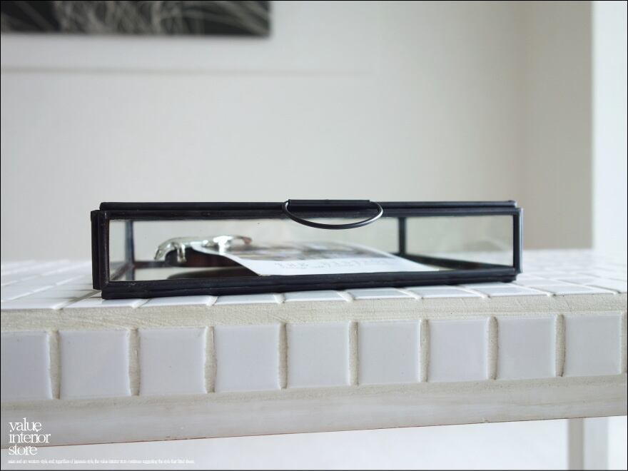 底面はミラーになっていますので、深さがあるよう感じられ、飾る小物もより引き立って見えます。ぜひお気に入りのジュエリーや時計などの小物収納ケースにどうぞ。