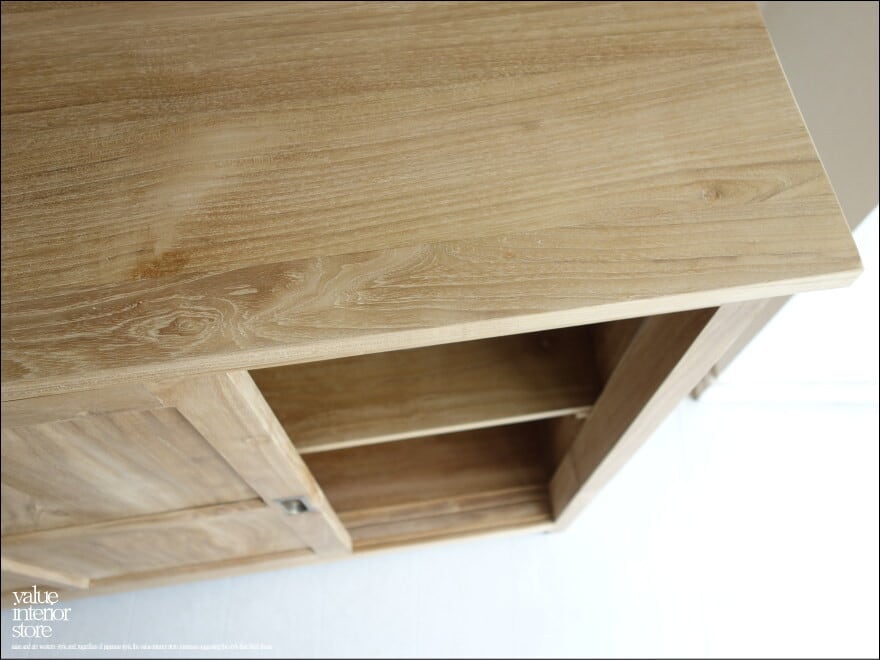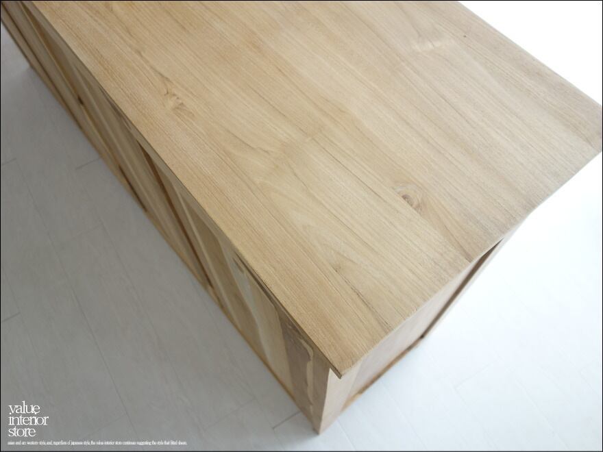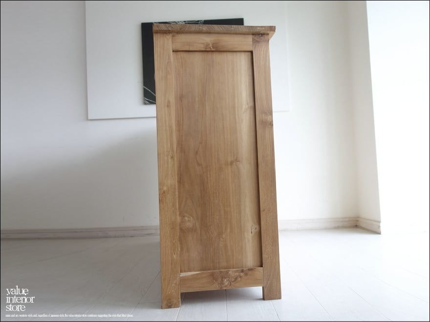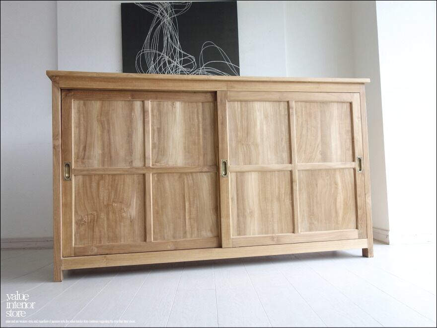 チーク総無垢材で贅沢に仕上げた使い勝手の良いスライド扉キャビネット。
