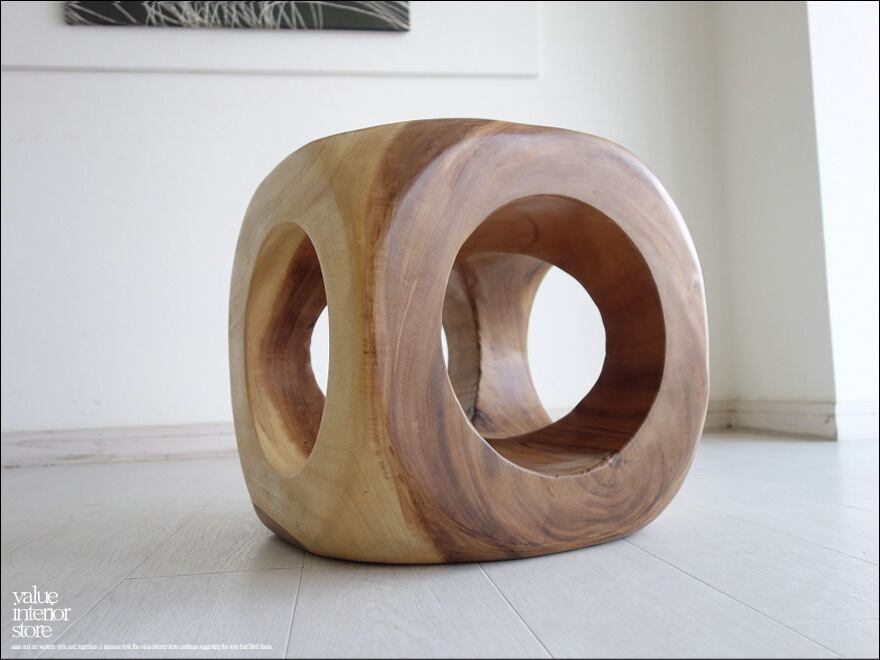 コロンとしていて丸くくり貫いてあるデザインも素敵です。ナチュラルな雰囲気で幅広いテイストに合わせやすく設置しやすいスツール。スツール以外にも花台やディスプレイ台としてもいいですね。
