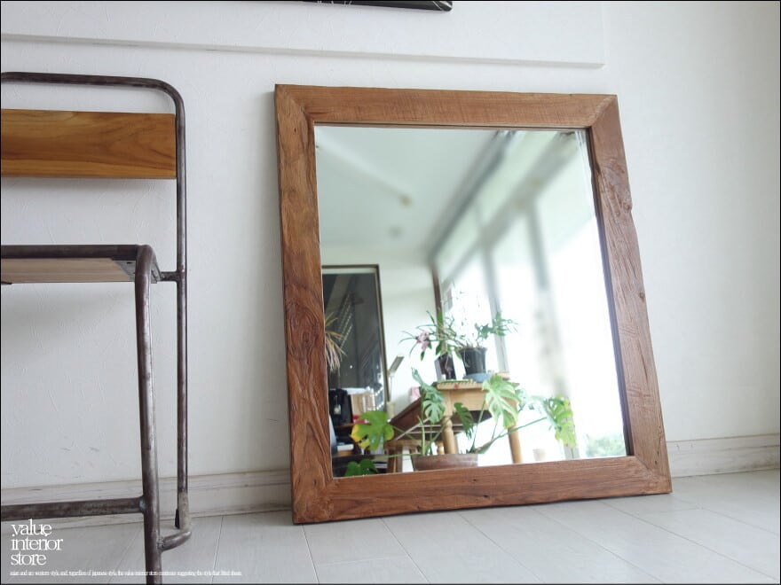 オールドチークフレームミラー壁掛89h ( バリューインテリアストアオリジナル )